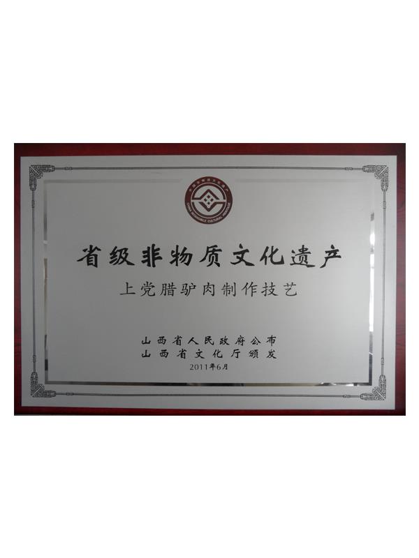 《本草綱目》第五十卷記載有:“驢肉味甘、無毒、解心煩、止風(fēng)狂、能安心氣、補(bǔ)血益氣、治遠(yuǎn)年勞損”的作用,尤其對失眠、健忘、眩暈、營養(yǎng)不良、貧血癥有獨特療效。上黨臘驢肉是山西長治市的漢族傳統(tǒng)名吃,其肉質(zhì)肥而不膩、瘦而不柴、香味四溢、回味無窮。早在明代,臘驢肉就已馳名于上黨和晉南地區(qū),產(chǎn)品遠(yuǎn)銷北京、天津、南京等南北名城。臘驢肉與當(dāng)?shù)氐臎龇邸⑺只馃环Q為潞安府(長治古稱潞安府)三寶。